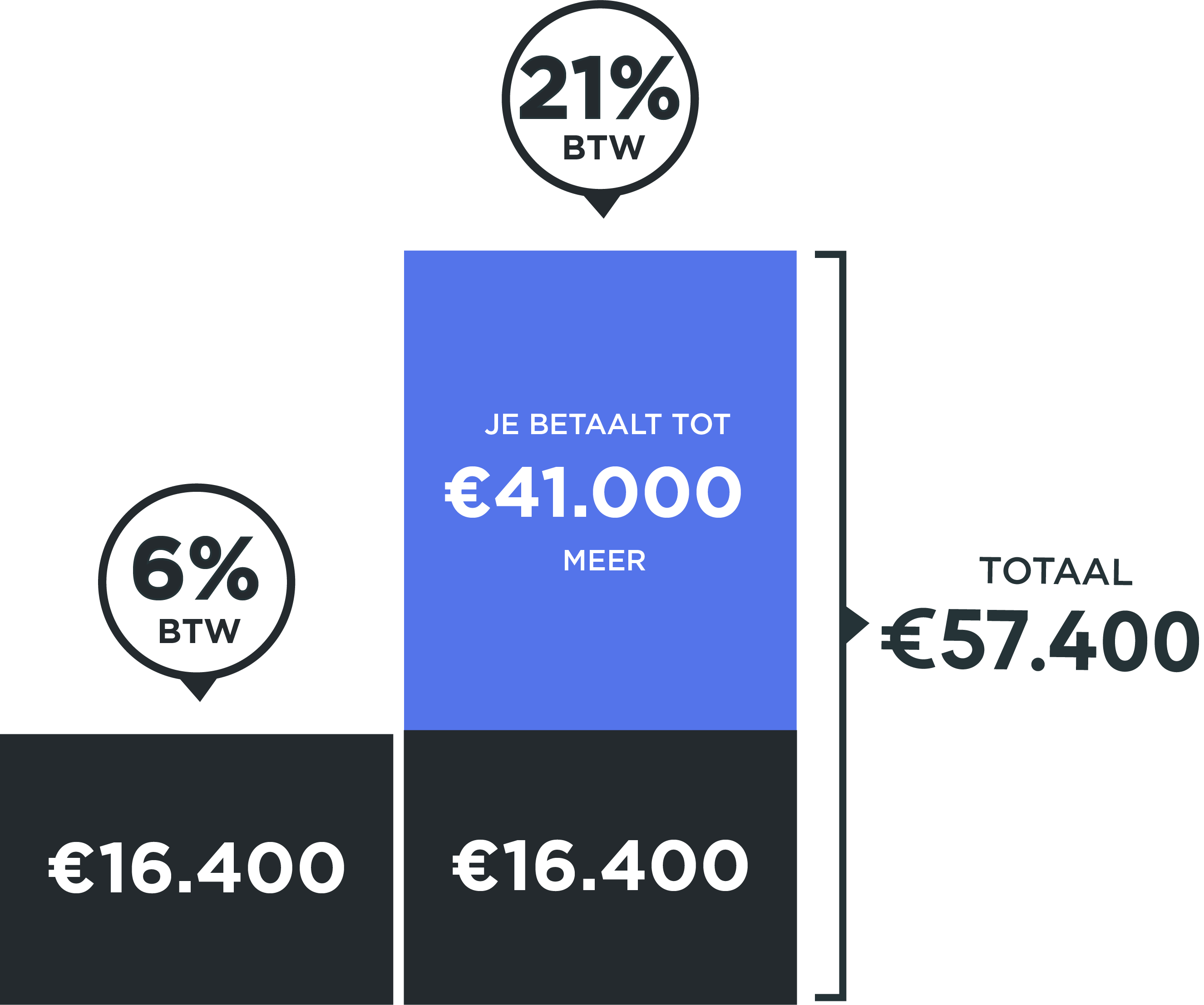 Bespaar tot 41K euro door 6% btw IPV 21%
